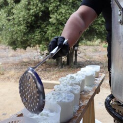 Ce couple d’éleveur de brebis et cuisinière vous propose une immersion à la bergerie pour endosser le costume du berger dans leur exploitation agricole familiale de 350 brebis et agneaux au cœur de la plaine du Reginu. Au programme, hors saison (ou plus sur demande pour les groupes) : traite matinale des brebis, fabrication de fromage frais et brocciu, atelier de cuisine et pâtisserie avec une cheffe passionnée autour des produits de la ferme et repas fermier. Le repas, servi sous les oliviers autour de l’atelier, se décline autour de plusieurs entrées dont vos préparations, un plat, du fromage et des desserts et comprend l’eau. Les agriculteurs proposent aussi aux beaux jours, des repas fermiers servis sous les oliviers avec cuisson au brasero autour des produits de l’exploitation.
