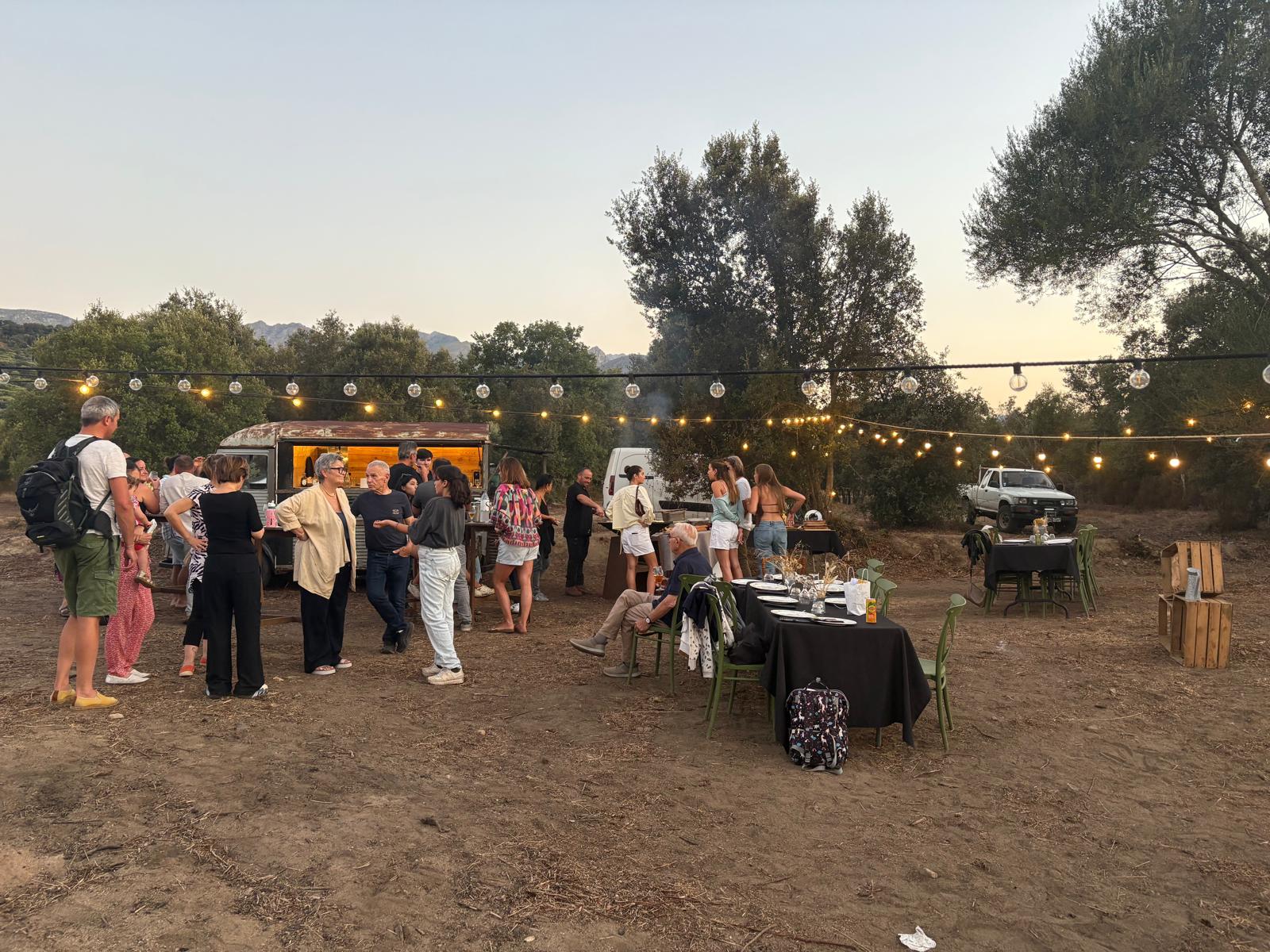 Ce couple d’éleveur de brebis et cuisinière vous propose des repas servis sous les oliviers autour de l’atelier, se décline autour de plusieurs entrées dont vos préparations, un plat, du fromage et des desserts et comprend l’eau. Les produits de l’exploitation sont mis à l’honneur avec une cuisson au brasero et un camion-bar vintage à disposition. Au menu : quatre entrées, un plat (agneau ou autre sur demande), du fromage et une farandole de desserts lactés… Tout est fait maison, avec le lait des brebis. Dans un cadre sauvage, c’est un moment convivial qui vous est proposé autour d’une table authentique en circuit court. Une immersion à la bergerie est aussi proposée hors saison dans l’exploitation agricole de 350 brebis et agneaux au cœur de la plaine du Reginu avec traite matinale des brebis, fabrication de fromage frais et brocciu, atelier de cuisine et pâtisserie avec une cheffe passionnée autour des produits de la ferme et repas fermier.