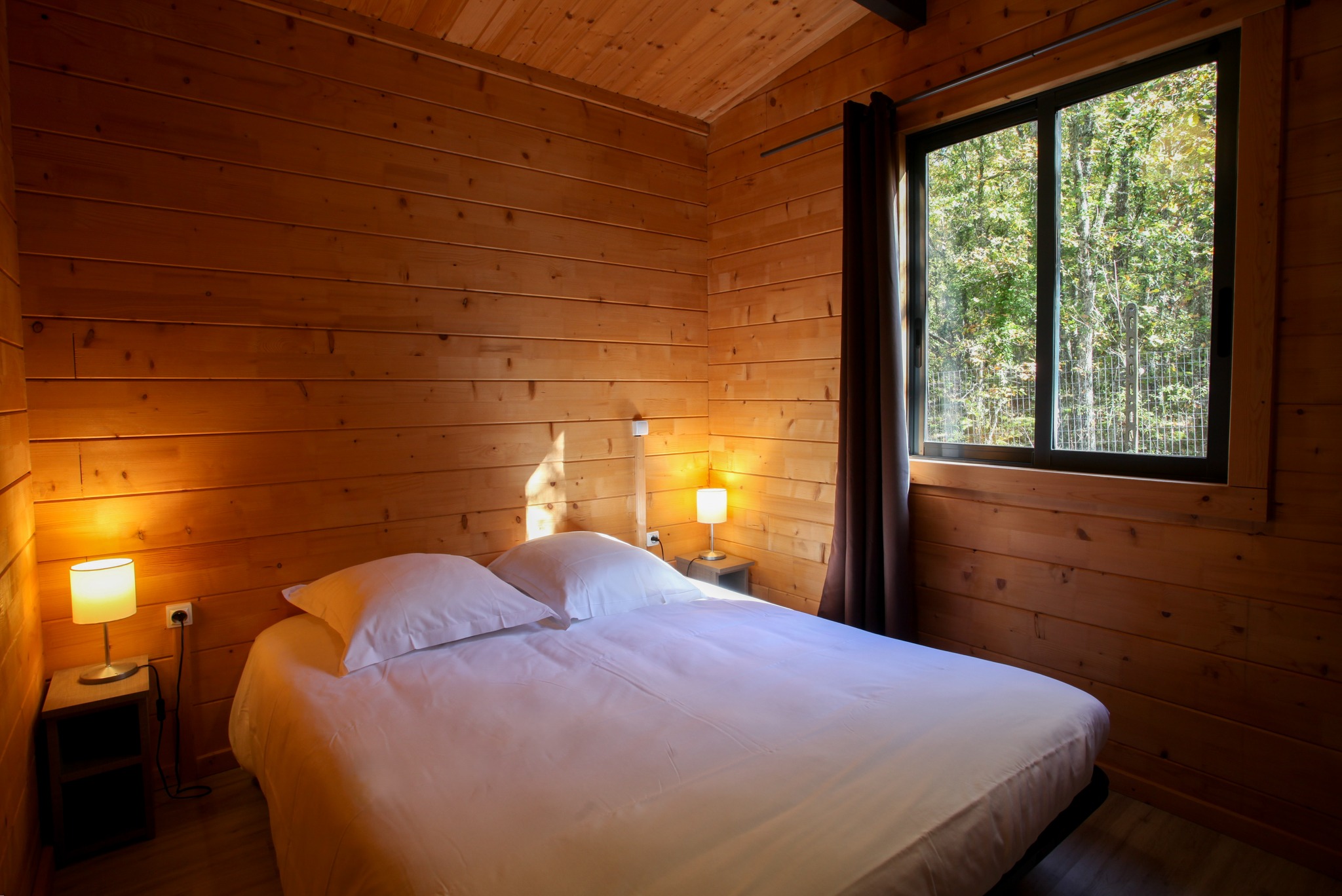 Ce chalet en bois prend racine au milieu de 35 espèces d’arbres, au pied du Monte d’Oro, dissimulé dans un cadre sauvage préservé qui s’étend sur 2 hectares et demi à Tattone. Au bord d’une rivière, les 6 chalets sont équipés d’une terrasse de 50m², d’un bain à remous privatif sous les chênes et d’un barbecue pour vos grillages d’été et figatelli d’hiver. Tous sont isolés et n’ont pas de vis-à-vis les uns avec les autres et disposent d’une entrée indépendante et d’une place de parking privée. À l’intérieur, ils se composent de deux chambres avec lits doubles et canapé-lit dans le salon pour 4 chalets (dont celui-ci) et pour les 2 autres, d’une troisième chambre avec lits superposés et d’un canapé simple dans le salon. Tous sont également composés d’une salle de bains avec toilettes séparées et d’une cuisine équipée. Depuis chaque chalet, on peut suivre une passerelle qui conduit à un espace ouvert avec des transats pour admirer les étoiles la nuit ou se dorer la pilule le jour. Pour la vue, c’est le Monte d’Oru qui s’impose avec son pic à 2 389 mètres d’altitude. Les passionnés de nature ne manqueront pas d’air entre les châtaigniers, houx, noisetiers, pins laricci, chênes, noyers, et autres arbres fruitiers (la liste s’étend tout de même à 35 espèces d’arbres). Profitez du bar et de la pizzeria du camping en saison (du même propriétaire, non loin mais suffisamment pour ne pas croiser les vacanciers ni même les entendre). Et pour regagner les villes principales, la traditionnelle Micheline aussi appelée u trinichellu se trouve à seulement 300 mètres de cette adresse. C’est ce que l’on appelle du dépaysement en pleine nature mais bien desservi.