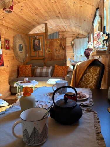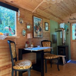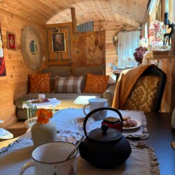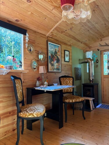 Cette roulotte rustique en bois vous propose une immersion en amoureux dans la forêt de Zonza. Fonctionnant à l’énergie solaire, elle est équipée d’une cuisine, d’un coin repas, d’un canapé convertible et d’une salle d’eau. La décoration, renouvelée au fil des saisons, est soignée à l’intérieur comme à l’extérieur : fleurs automnales éclatantes, mise en scène printanière, décorations d’Halloween ou de Pâques… chaque période de l’année révèle un nouvel univers. À l’extérieur, une table sous le porche, un espace détente avec hamac sous les chênes, barbecue et table avec bancs intégrés sont proposés. L’hiver, un poêle à bois réchauffe l’atmosphère, tandis que l’été, la rivière à deux pas, offre un bain rafraîchissant. De nombreuses randonnées se trouvent à proximité comme les aiguilles de Bavella ou le dolmen de Fontanaccia.