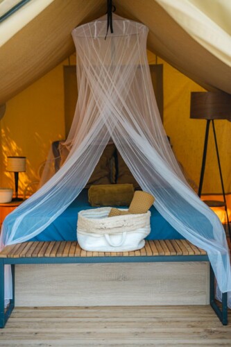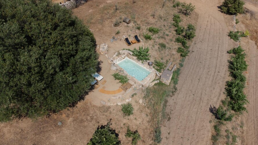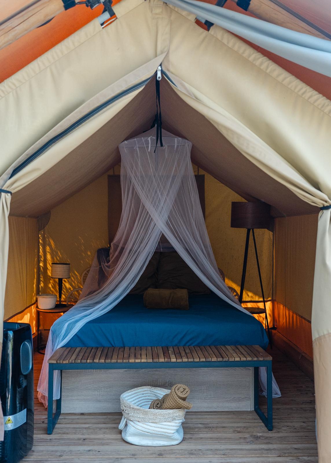 Tente lodge avec piscine dans un champ de grenades