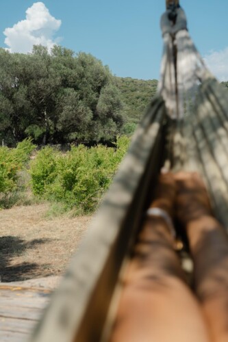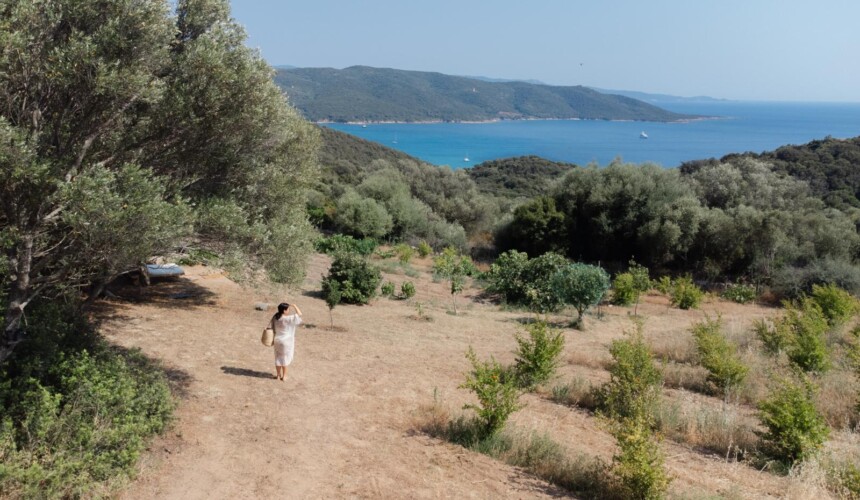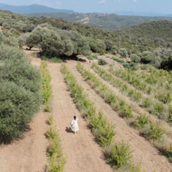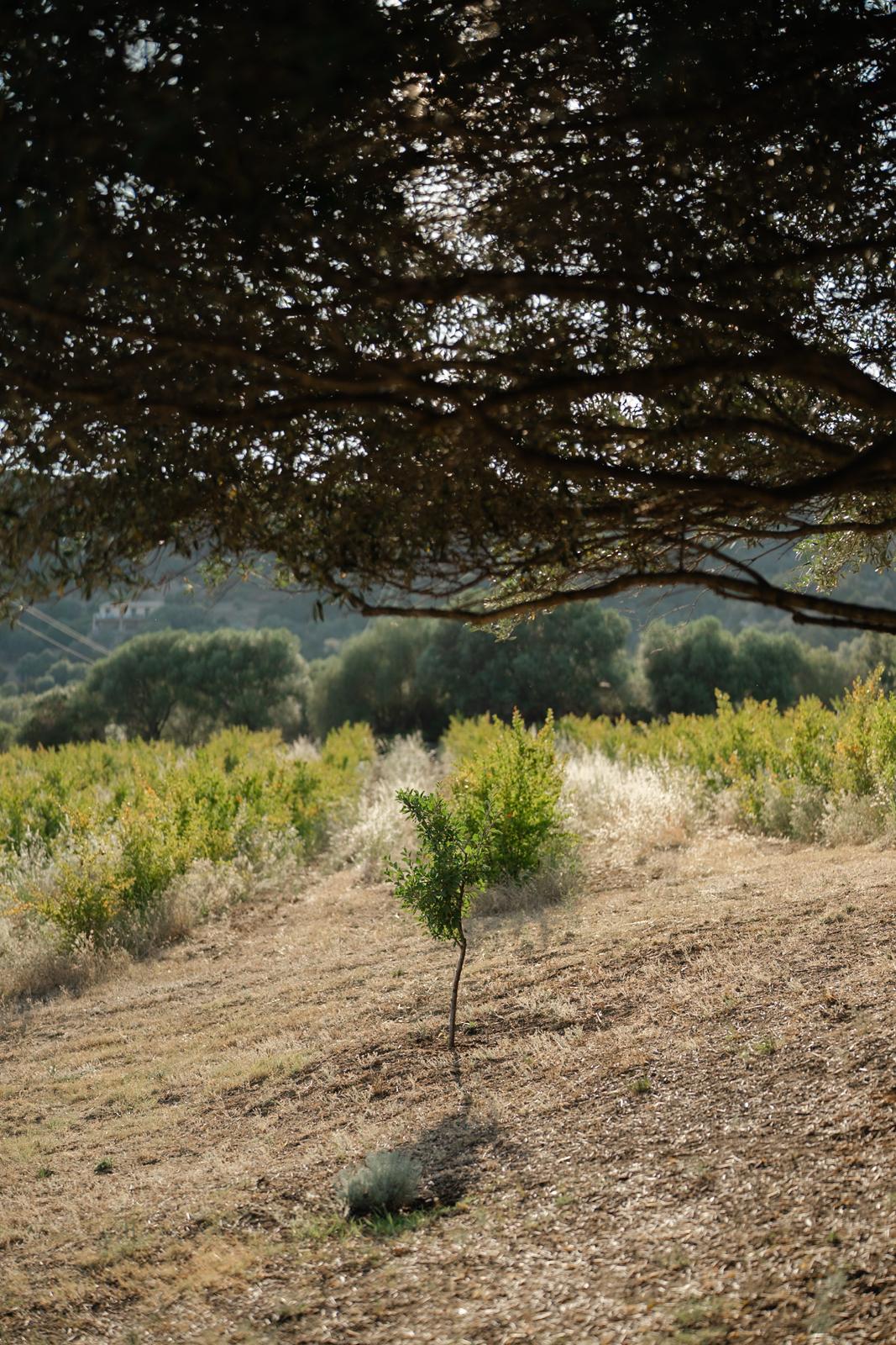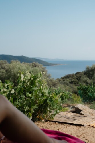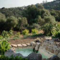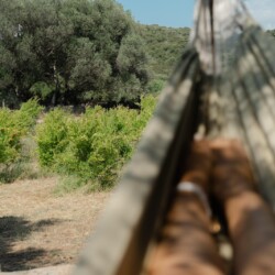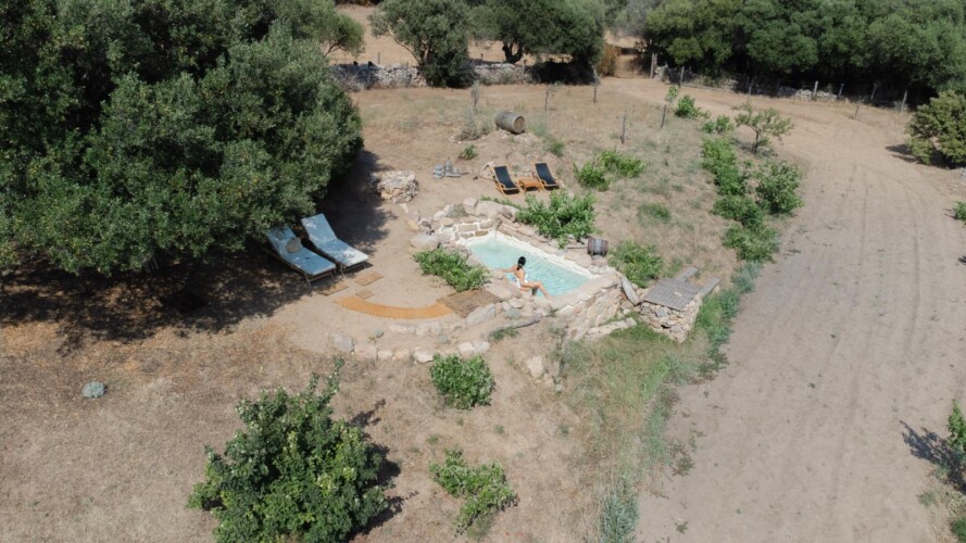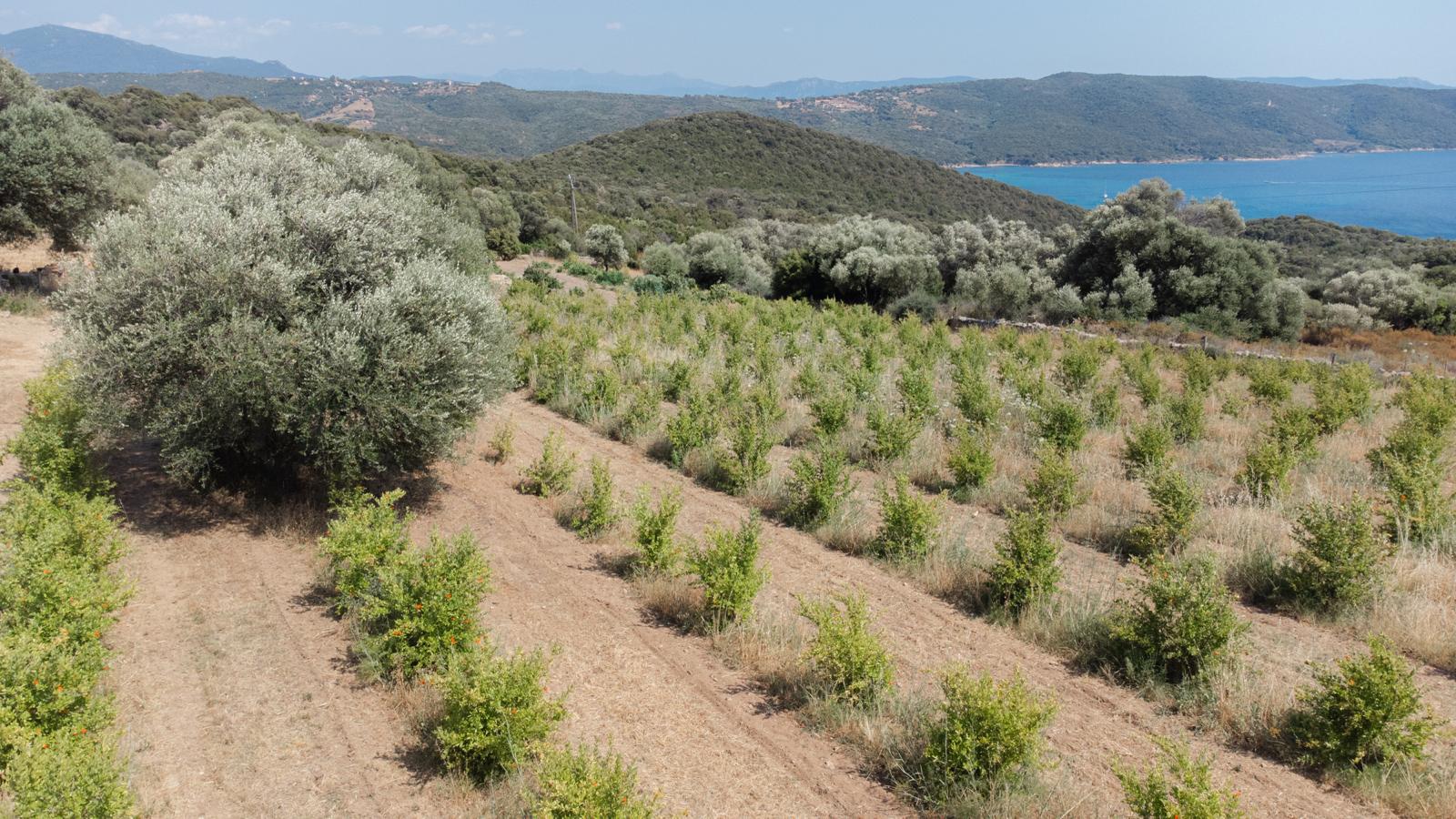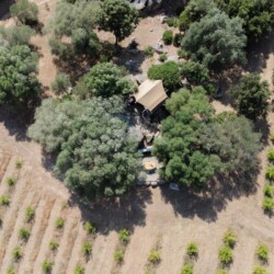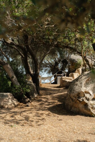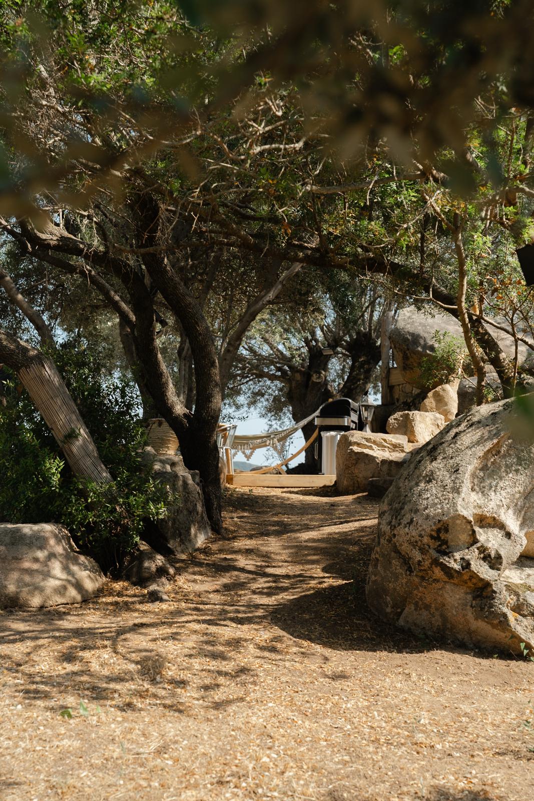 Au cœur d’un champ de grenades de 25 hectares, cette tente lodge perchée sur un rocher offre une vue panoramique sur la baie de Cupabia. Ce nid douillet pour 2 personnes est climatisé et équipé d’un lit double à l’abri d’une moustiquaire, d’une kitchenette extérieure, d’une salle de bain en plein air sculptée dans la roche et de WC en dur sous les chênes. Un bassin en pierre invite à la baignade sur l’autre extrémité du domaine, à 500 mètres de la tente. À proximité, un sentier mène à la plage en 15 minutes. 100 mètres au-dessus de la plantation de grenadiers et potager, une table d’hôtes est proposée avec au menu : les produits du jardin et de producteurs voisins et quelques fois, des chants corses s’invitent à table.